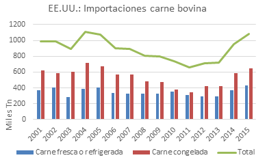 EE.UU. es uno de los principales mercados mundiales de carnes. En 2015, entre carne fresca y refrigerada y carne congelada, totalizaron compras por 1,07 millones de toneladas, provenientes de Australia, Canadá, Nueva Zelandia, Uruguay, Nicaragua y México, entre otros.