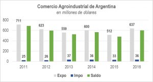 Argentina posee un saldo negativo de aproximadamente 1.780 millones de dólares anuales -promedio 2011-16- que luego de un pico en 2013, ha experimentado una leve caída. No obstante, el sector agroindustrial exhibe un superávit comercial de alrededor de 575 millones de dólares anuales. Cabe destacar, que Alemania representa un mercado de 82 millones de personas, abastecido principalmente por sus socios regionales de la propia Unión Europea (origen y destino de más del 70% de su comercio agroindustrial) y en apenas un 1% por Argentina.